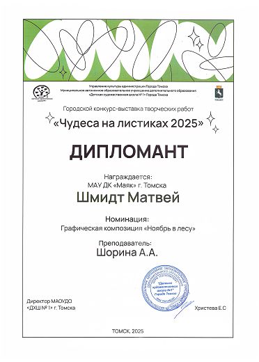 - 2 дипломанта конкурса - Матвей Шмидт и Юдакова Елизавета;