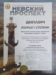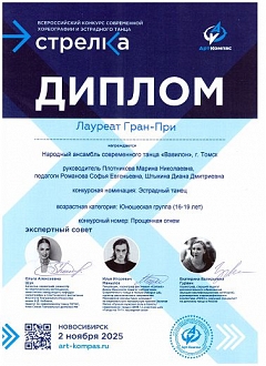 Номер "Настоящая свобода" был удостоен Диплома ГРАН-ПРИ в номинации "Хореография. Современная хореография".