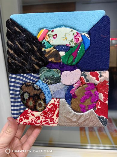На занятиях ребята погрузились в увлекательный мир кинусайга — японского искусства создания картин из лоскутков ткани различного размера и цвета, выполненного в мозаичной технике. Это уникальное направление рукоделия позволяет создавать настоящие шедевры, а традиционно для этих картин использовали обрезки старых шелковых кимоно!