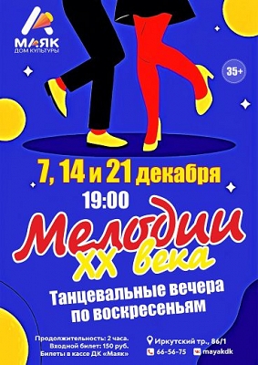 Танцевальный вечер для людей старшего поколения «Мелодии XX века» пройдет в Доме культуры "Маяк".