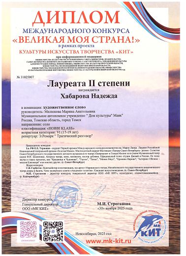 С 28 по 30 ноября в г. Новосибирск прошел международный конкурс "Великая моя страна!", и участники Творческого объединения "Школа техники речи" показали впечатляющие результаты!