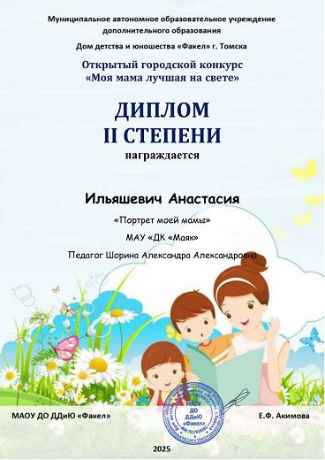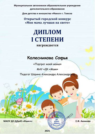 Трогательные портреты любимых мам удостоены дипломами 1,2 и 3 степени. Спасибо организаторам за возможность проявить творческий потенциал детей