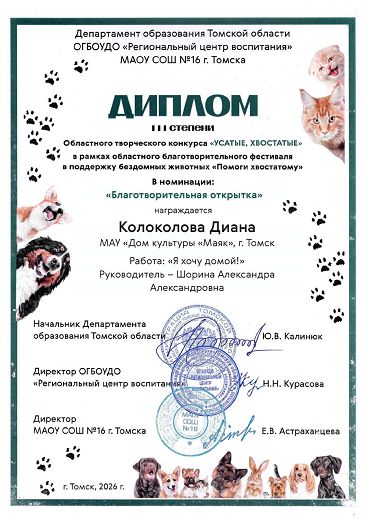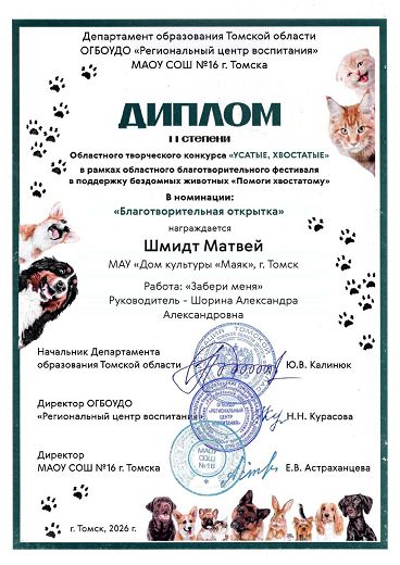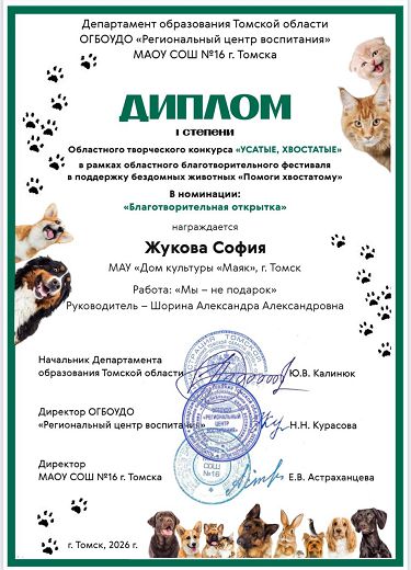 Победителей наградили дипломами в субботу, 28 февраля. Организаторами фестиваля стали департамент образования Томской области ОГБОУДО «Региональный центр воспитания» и МАОУ СОШ N16 г. Томска.