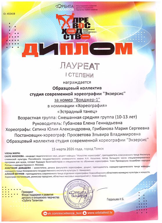Диплом Лауреата 1 степени за номер "Вояджер-1"Поздравляем девочек и педагогов с этими замечательными достижениями! Так держать!